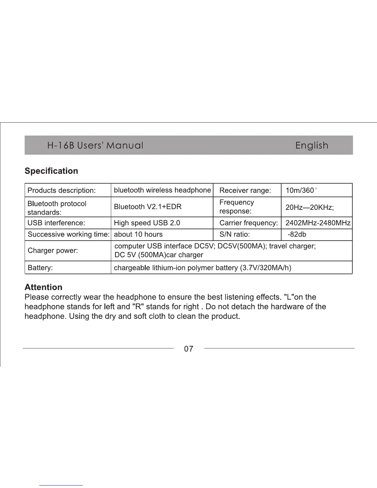 lasmex H-16B - Detailed Product Specifications; Important User Attention