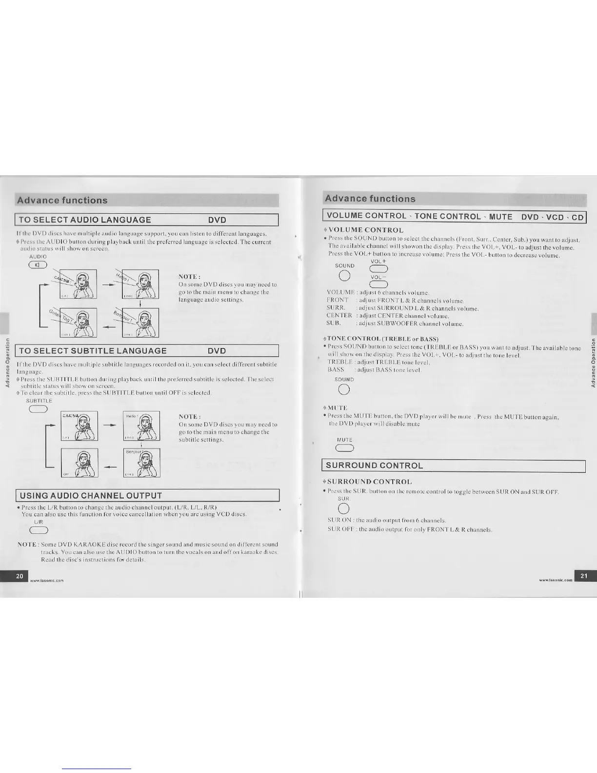 NO rE : sone DVD KAliAOKhl disc fecord lhe sin8er sound and music sound on diltbrcnl sound