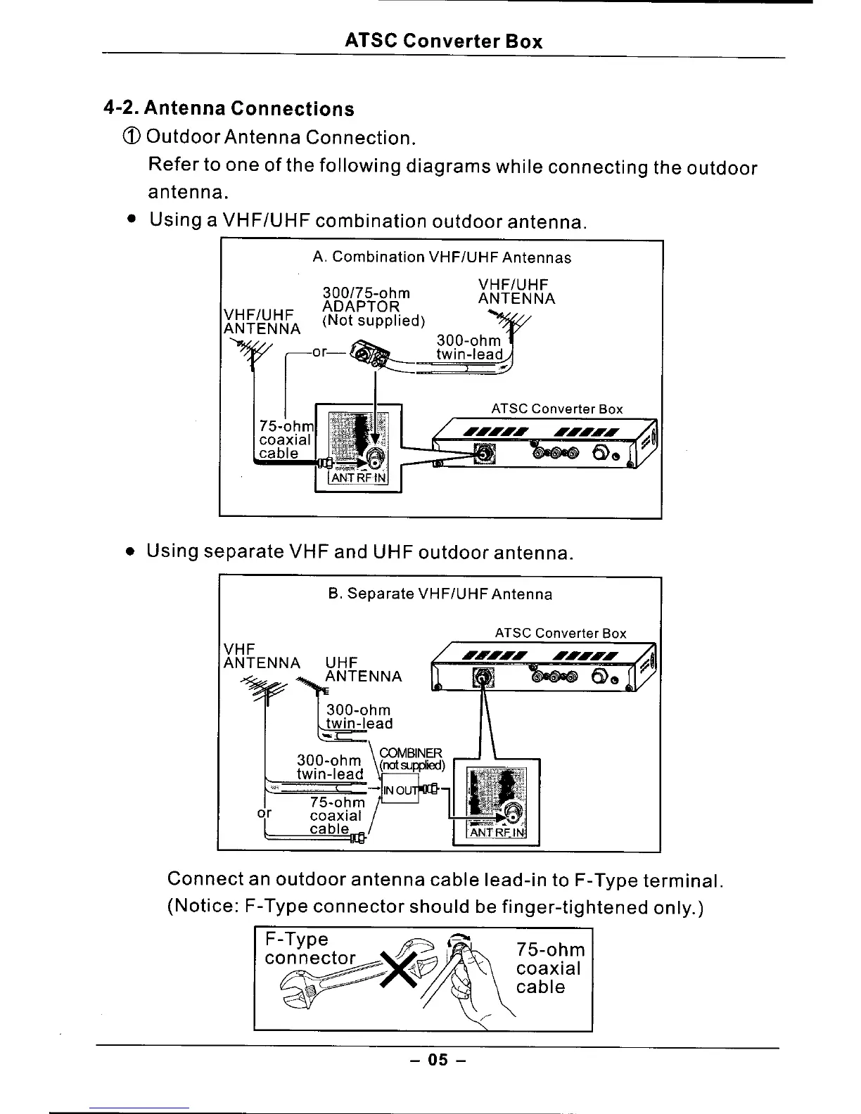 (Notice: F-Type connector should be finger-tightened only.)
