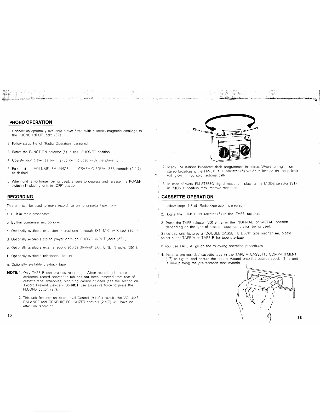 Lasonic TRC-931 - Cassette Deck Operations; Phono Operation; Cassette Playback and Selection
