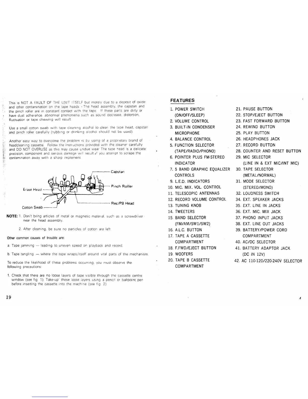 Lasonic TRC-931 - Maintenance and Tape Handling; Cleaning Tape Heads and Mechanism; Tape Handling Precautions