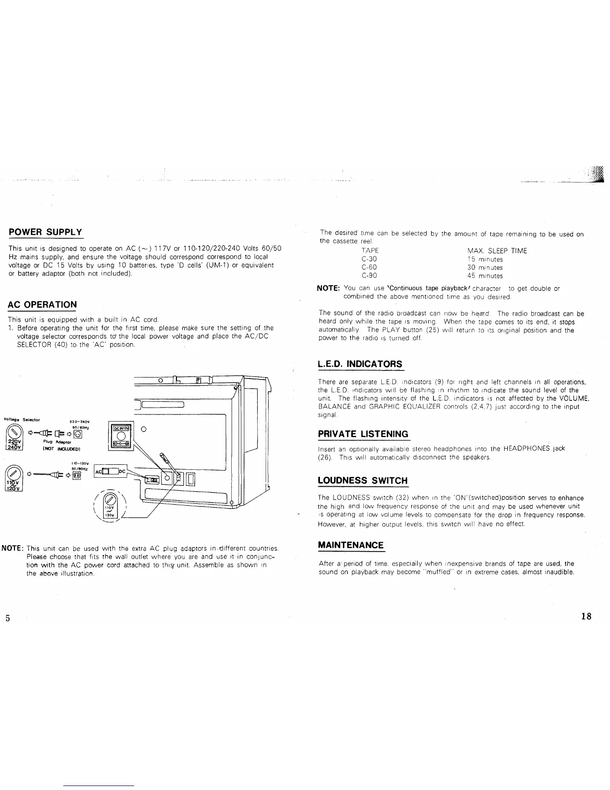 Lasonic TRC-931 - Power and Indicator Functions; Power Supply Options; LED Indicators and Features