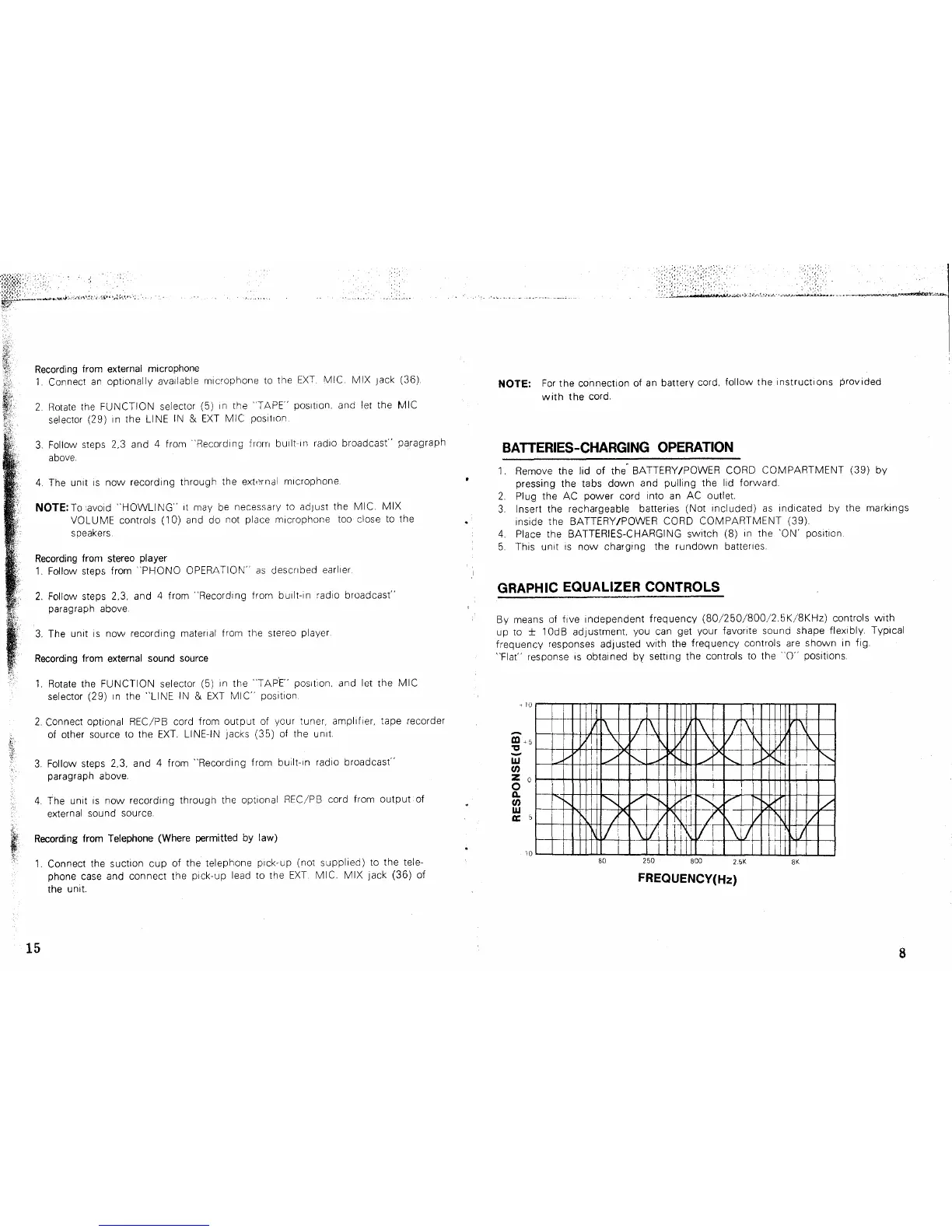 Lasonic TRC-931 - Recording Methods; Microphone and Source Recording; Graphic Equalizer Controls
