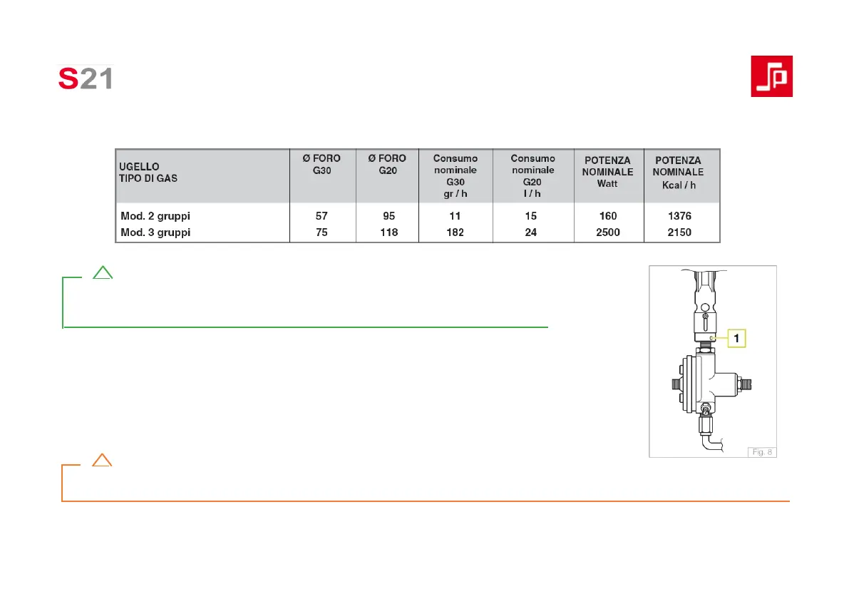 Adaptation to a different type of gas is done by replacing the nozzle as indicated in the