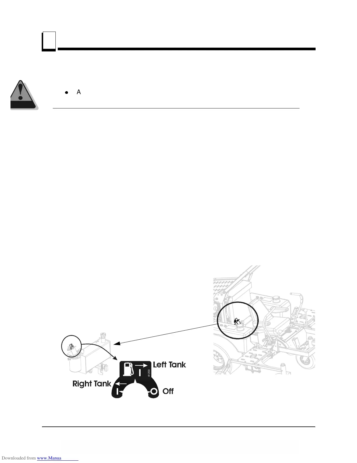 The fuel shut-off valve is located behind the operator seat