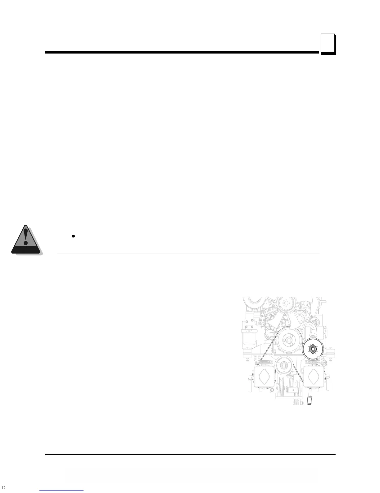 engine block. The hydraulic belt idler is mounted on the engine framework. The idler should ten-