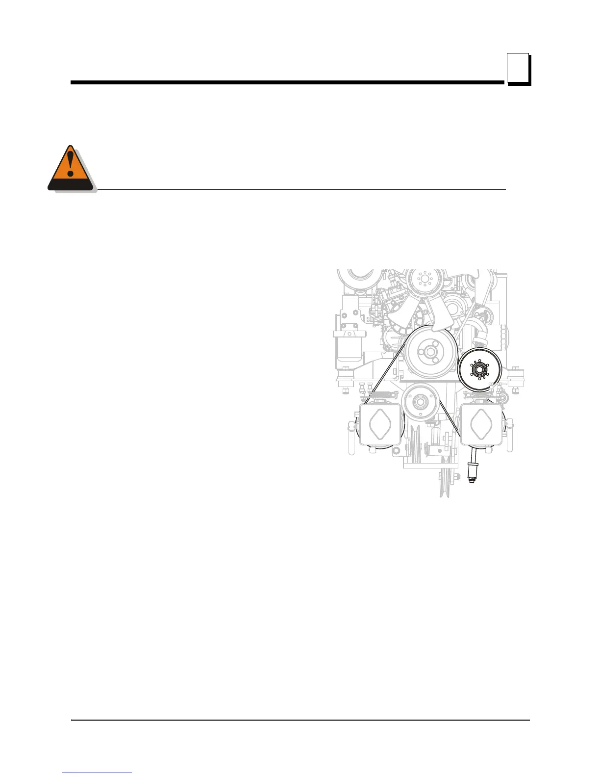 and the engine block. The hydraulic belt idler is mounted on the engine framework. The