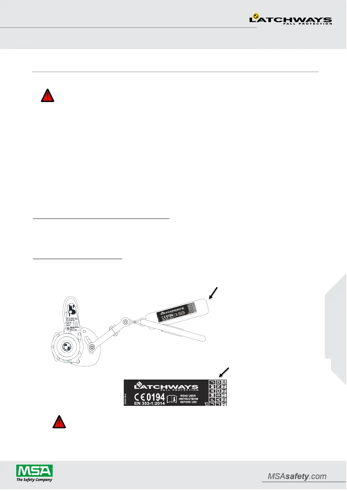 Do not use the Latchways vertical device for work positioning (i.e. primary means of support); to support