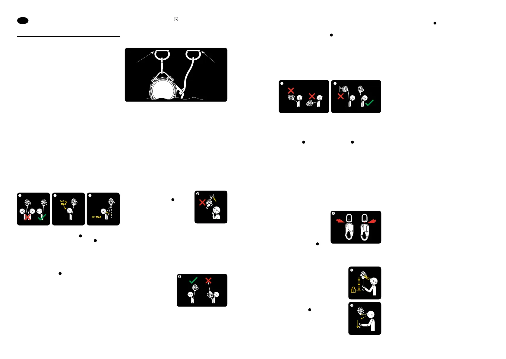 2 Låt aldrig livlinan löpa mellan benen eller under armarna.