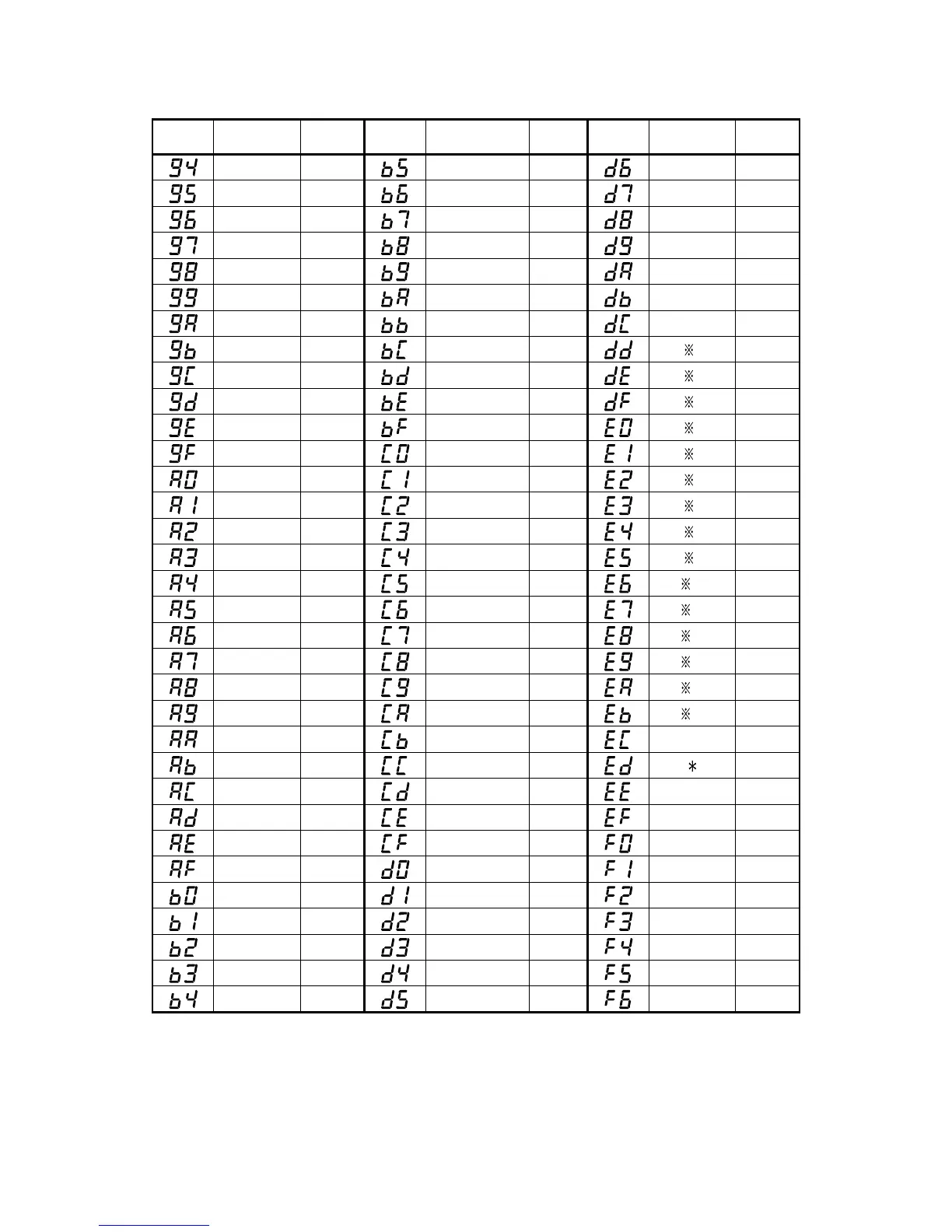 Code=d8 to dc: Number digits depend on the setting.