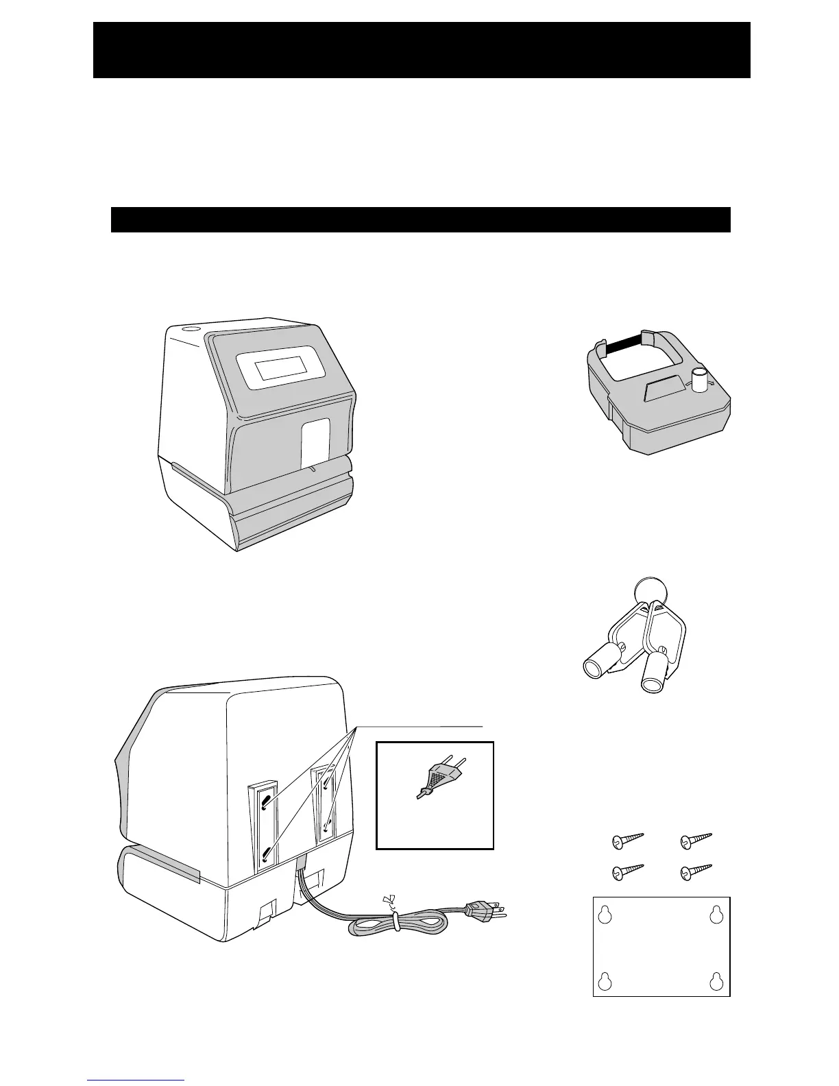 Unpack the time clock and check its contents to ensure that the time clock unit and all
