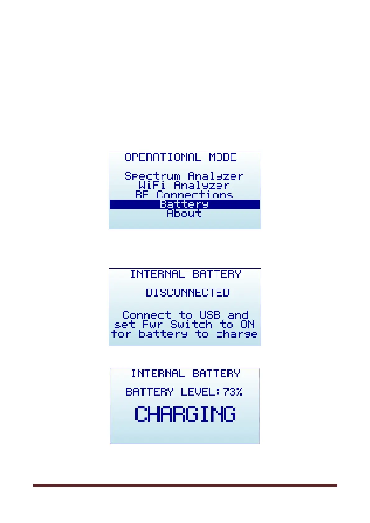 Inside this INTERNAL BATTERY charger screen, it is easier to realize if the battery is being charged. In this