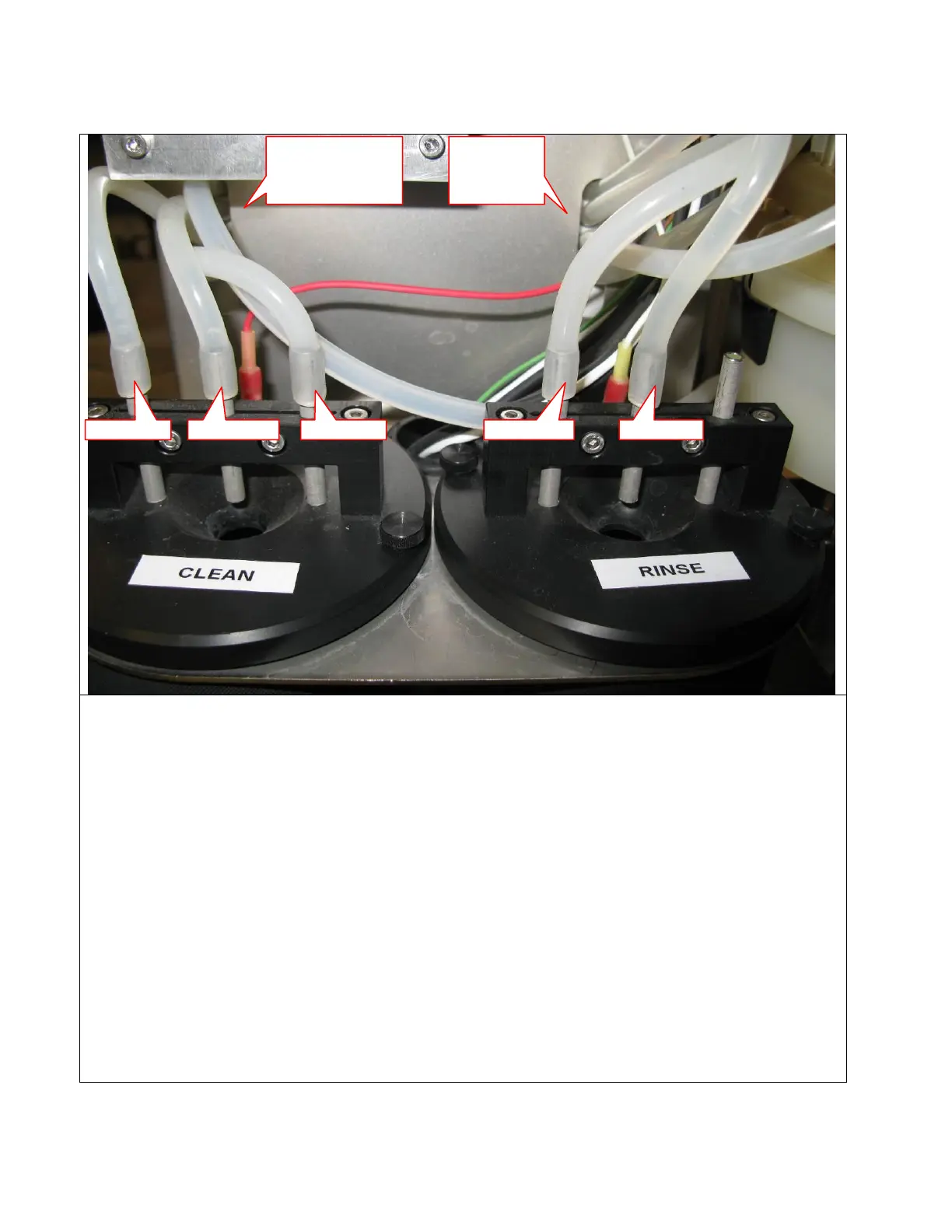 toggle “detergent pump” on/off (4.2.3.5) and observe if detergent is pumped to the clean container