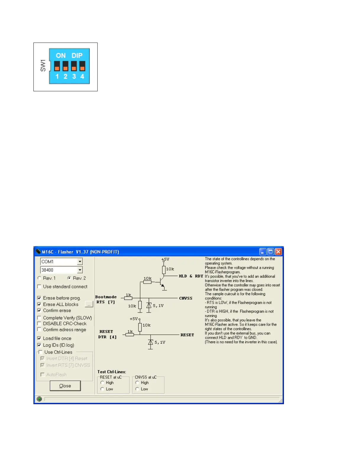 Installation guide to the M16C Flasher program, if not installed on the PC.