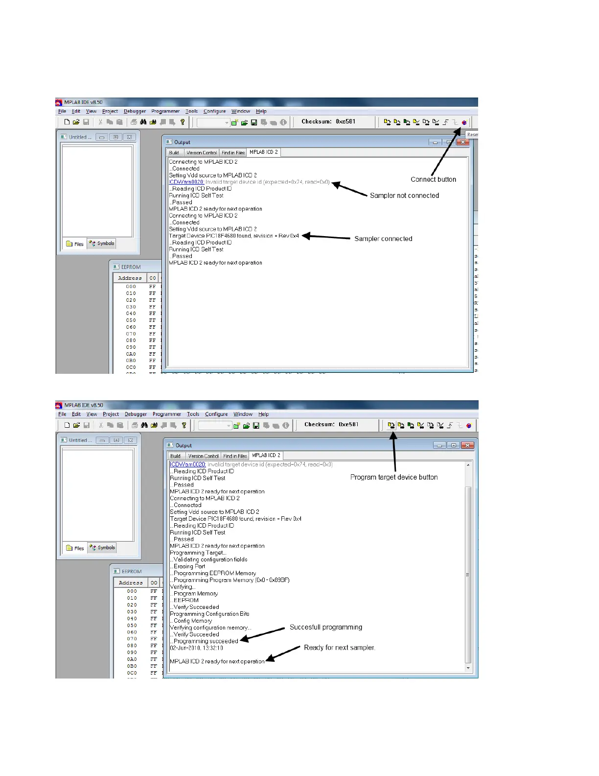 8. Use the Connect button for the programmer to connect to the sampler :