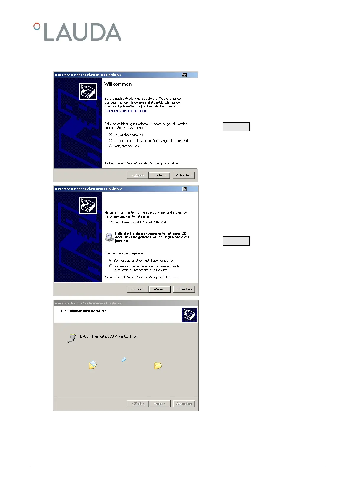 For the first time, after installation on the PC, a wizard opens to search for new hardware. Please follow the wizard