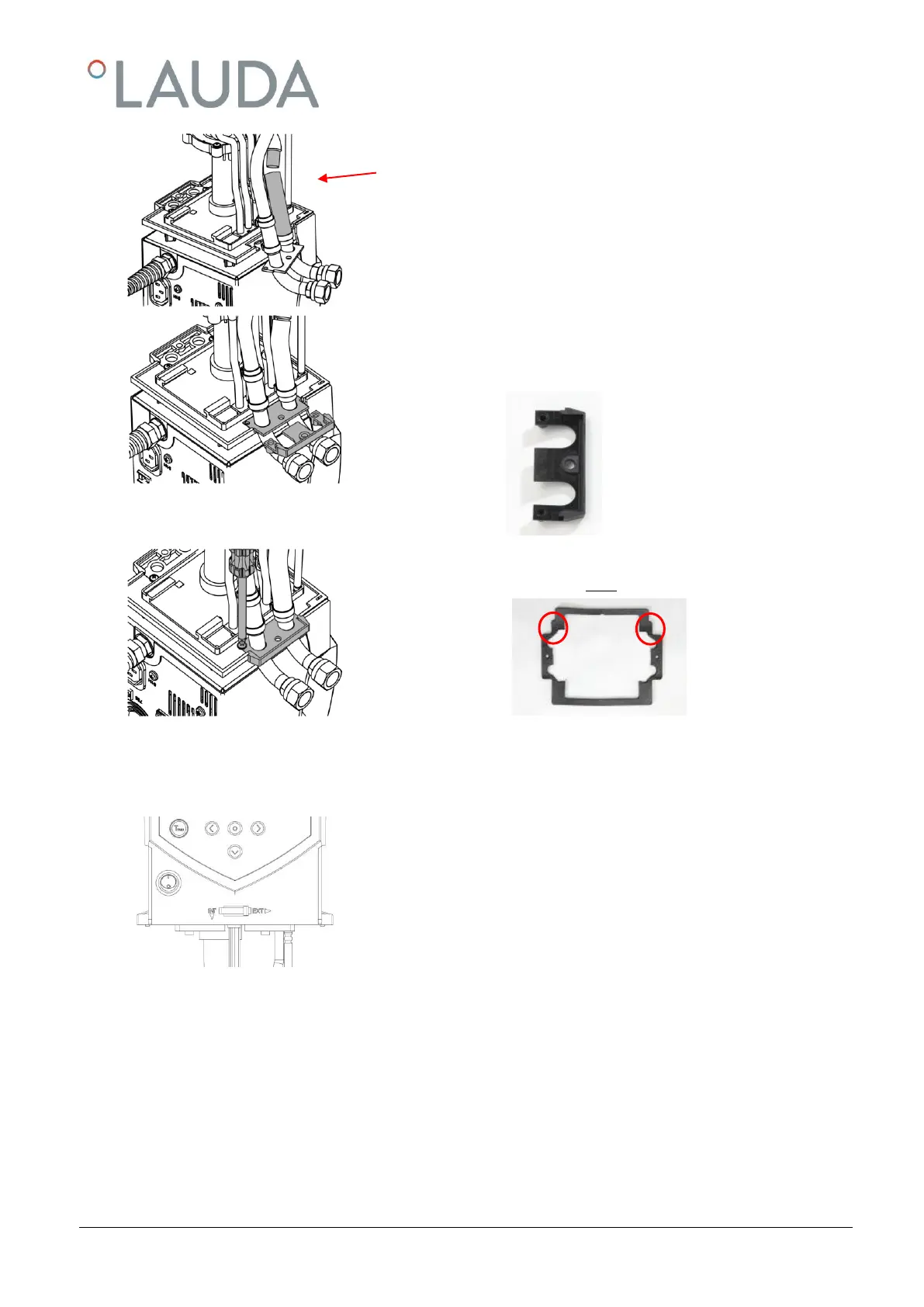 - Fit the hose section of the pump connection set onto the outflow elbow