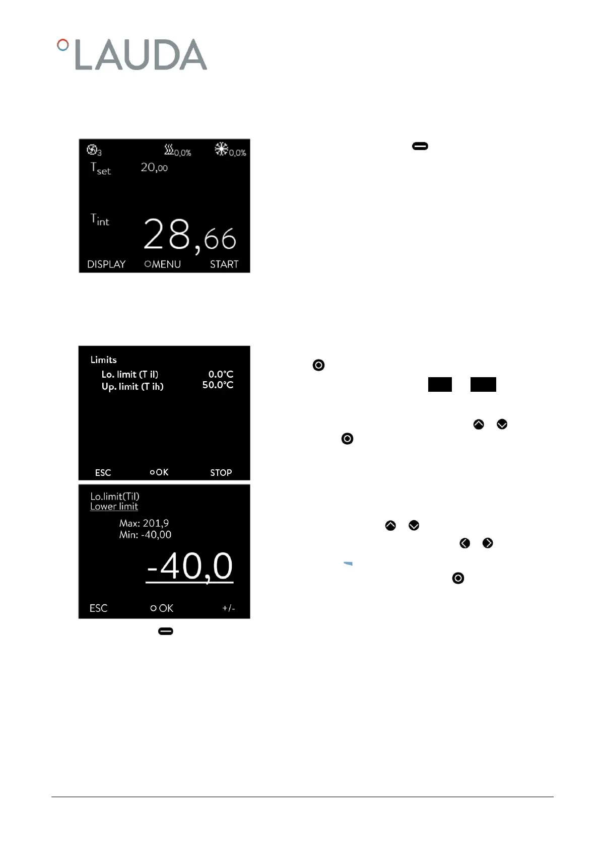 - Select the lower (Til) or upper (Tih) limit with or and con-
