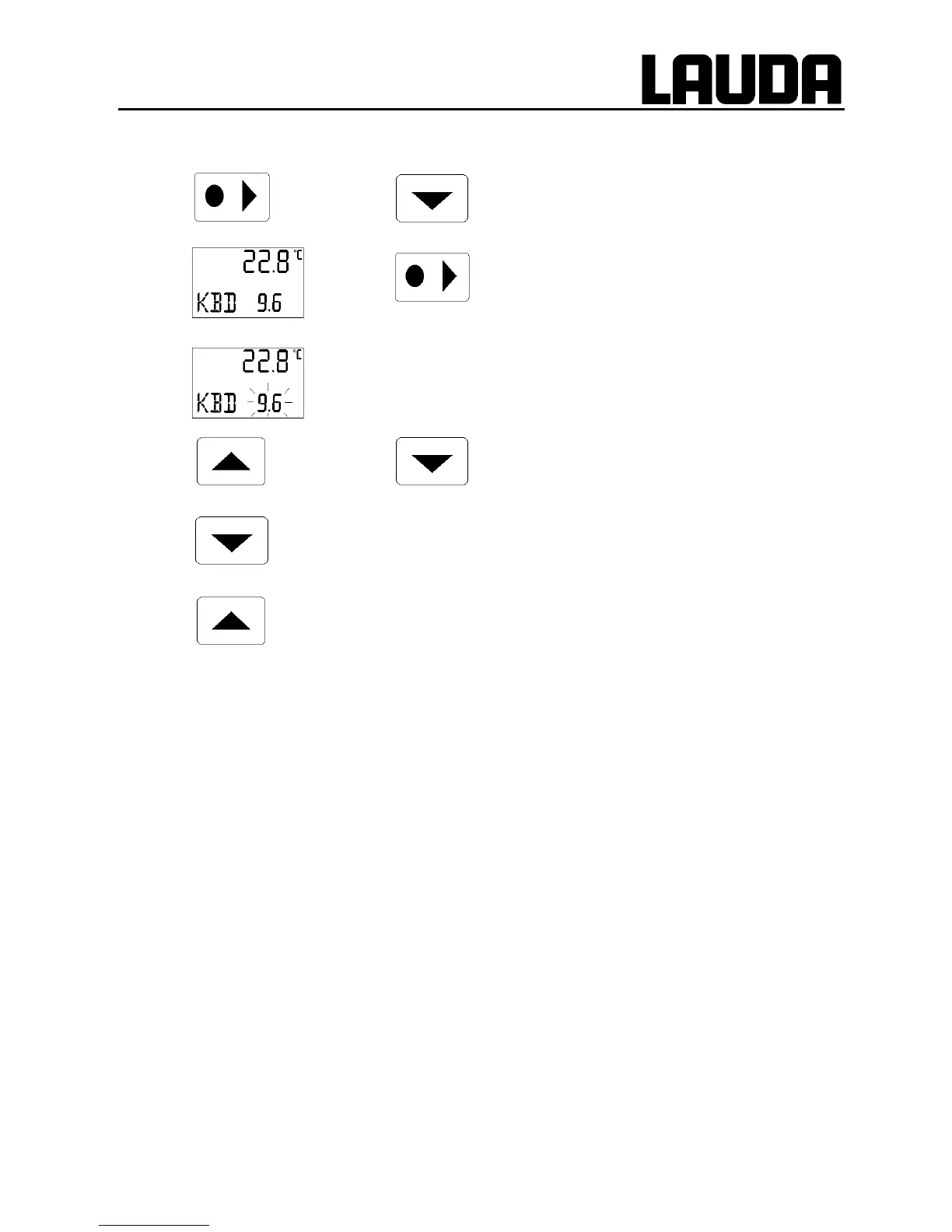 The display shows the current bath temperature, KBD