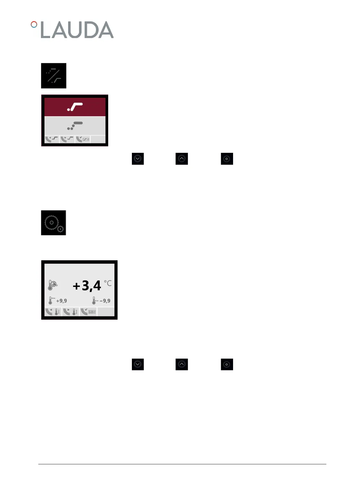 Set the altered temperature value with keys ① and ② and confirm with key ③. The display returns to the menu basic