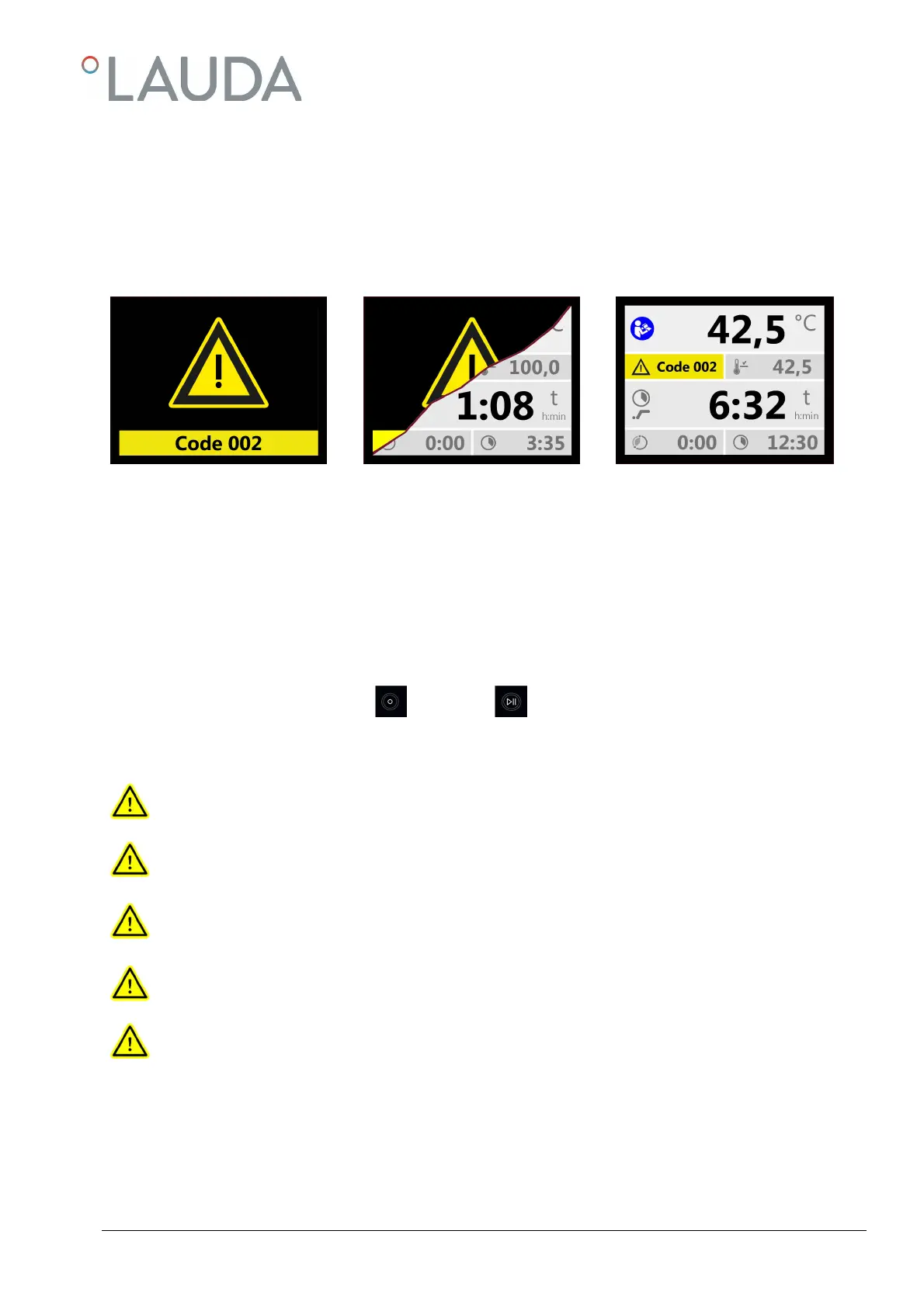 tion, marked in yellow and with a "caution" symbol, as well as the code number remain shown in the display of on-going
