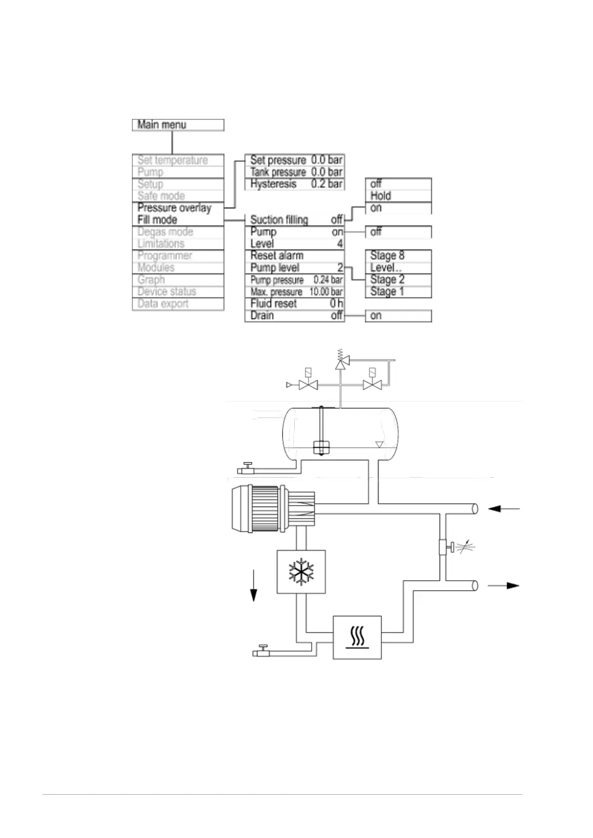 Fig. 77: Menu structure of the pressure overlay