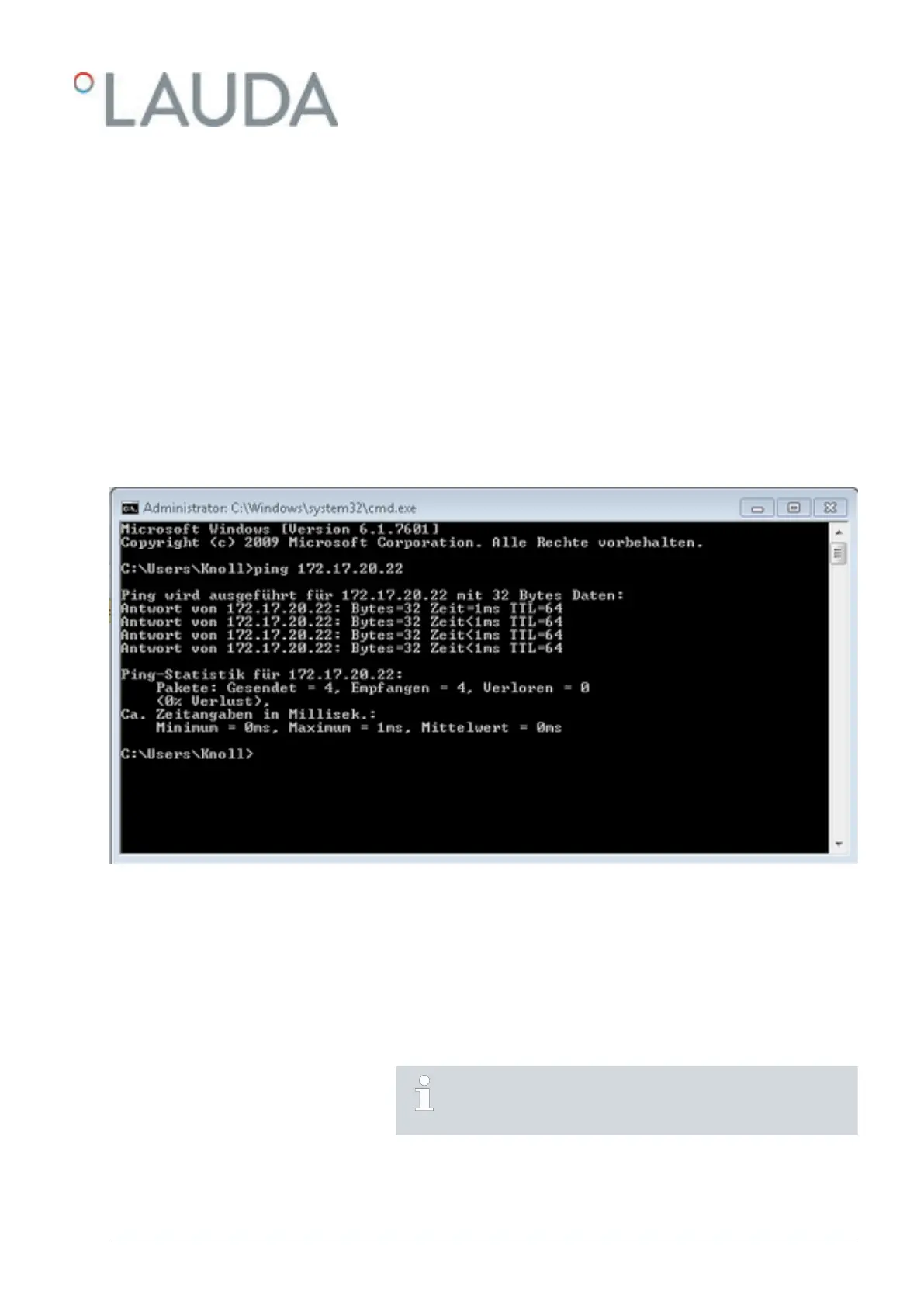 n Enter the ping command together with the IP address.