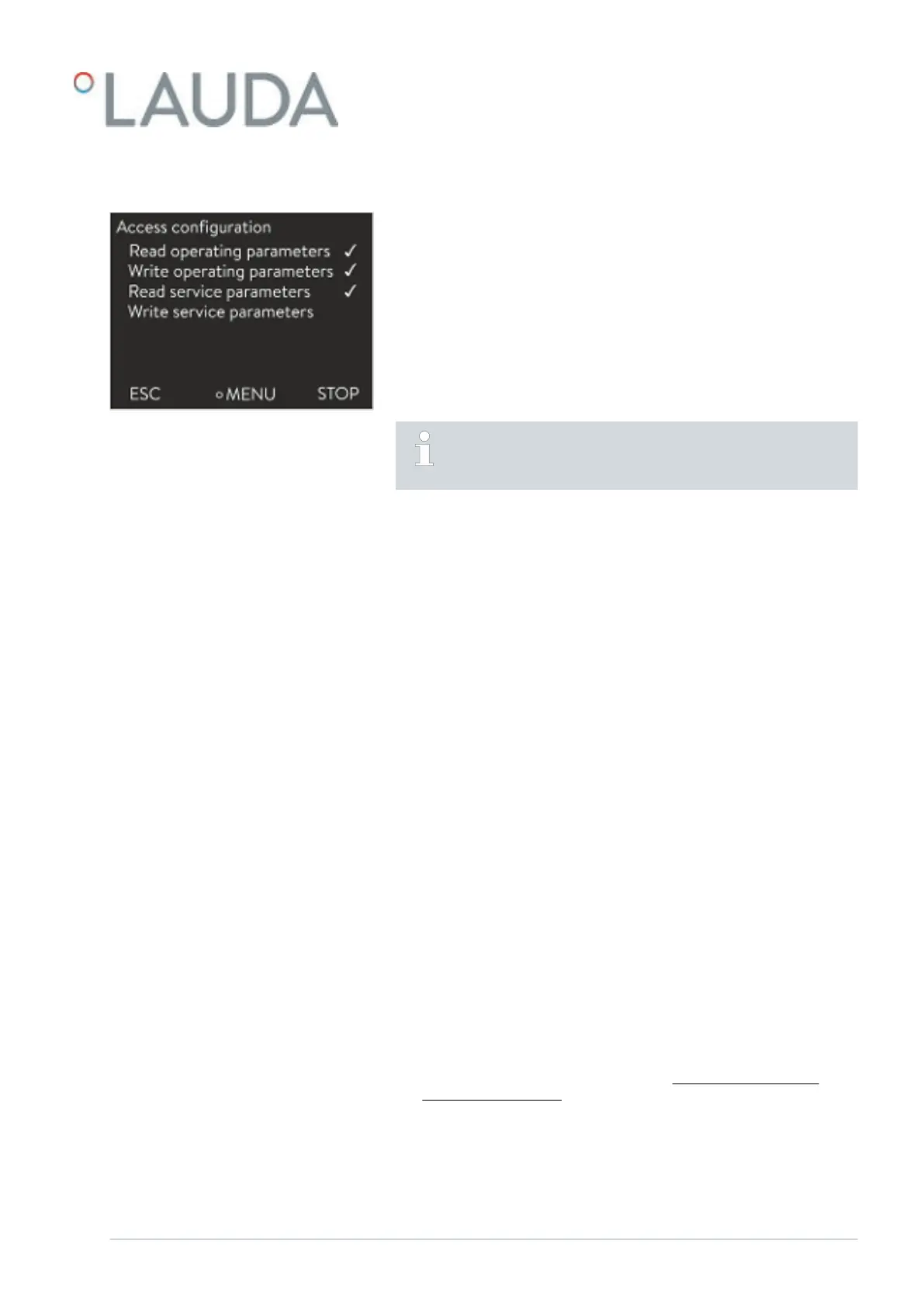maintenance by the LAUDA Service, is activated on the device side via [Op.
