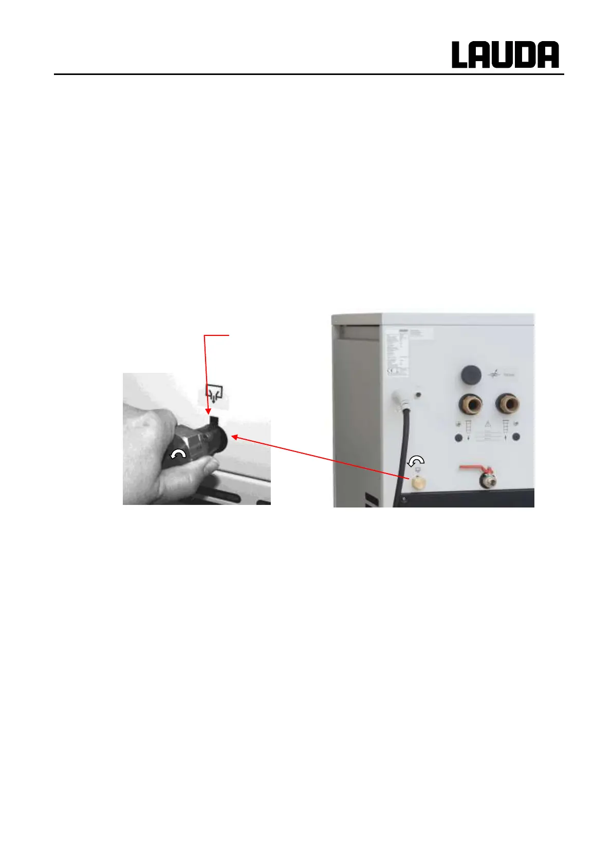 this operation turn the closing plug approx. 45° anticlockwise until the hose end ears can be pulled