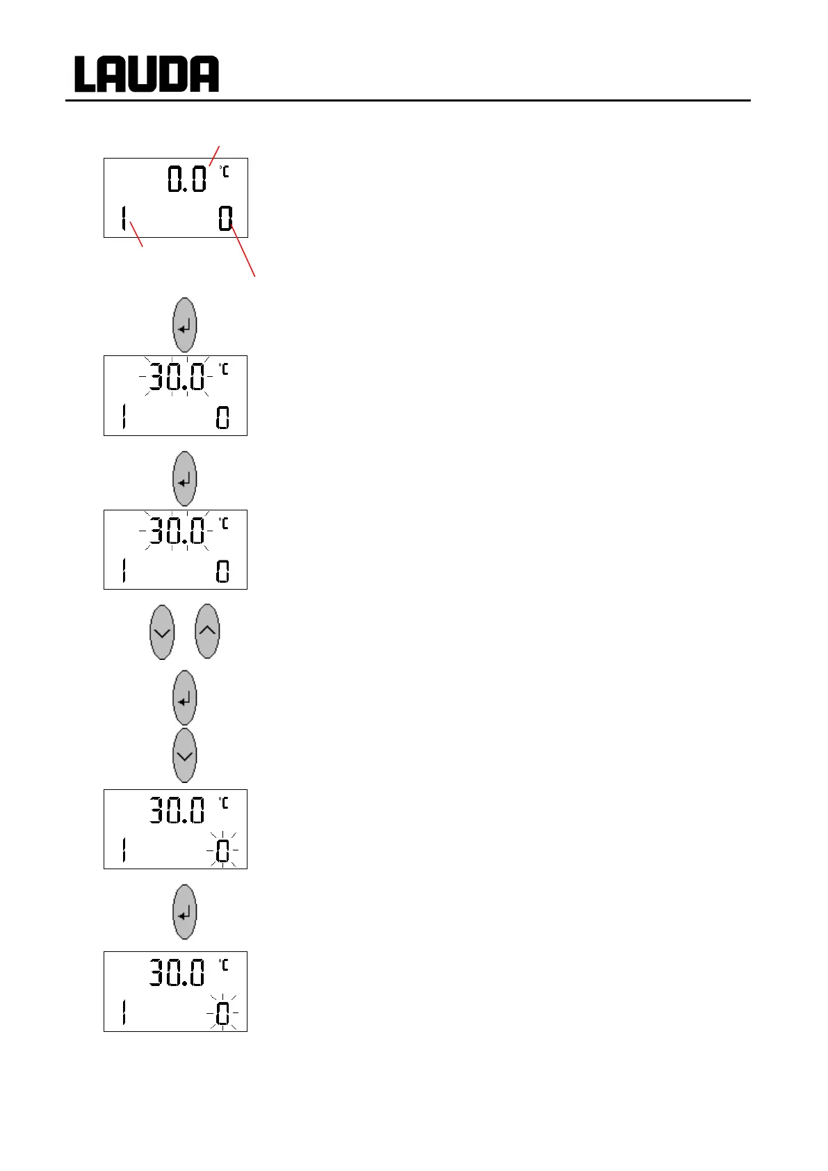 Press key. Segment target temperature flashes with