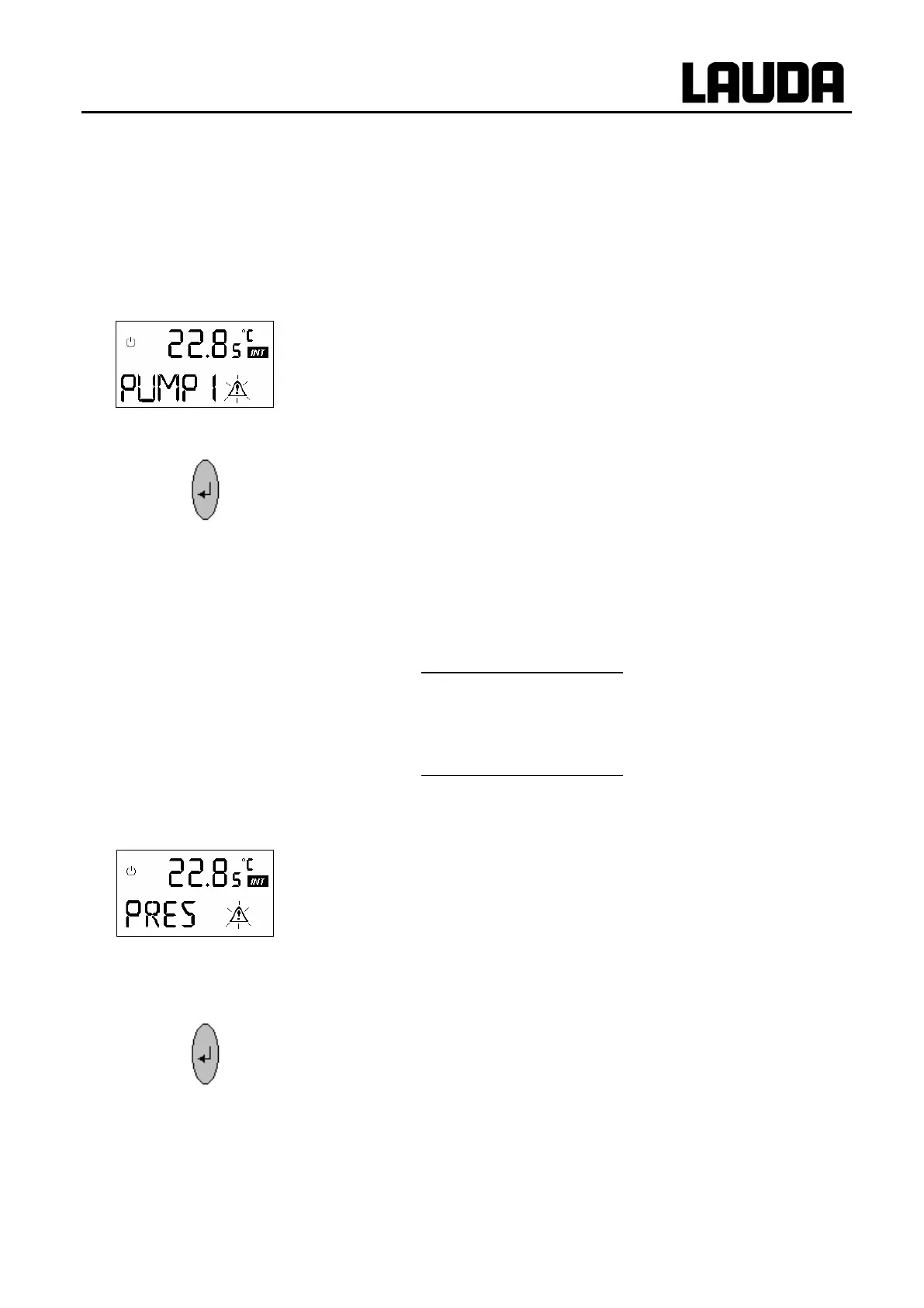 The display PUMP 1 appears and the fault triangle is