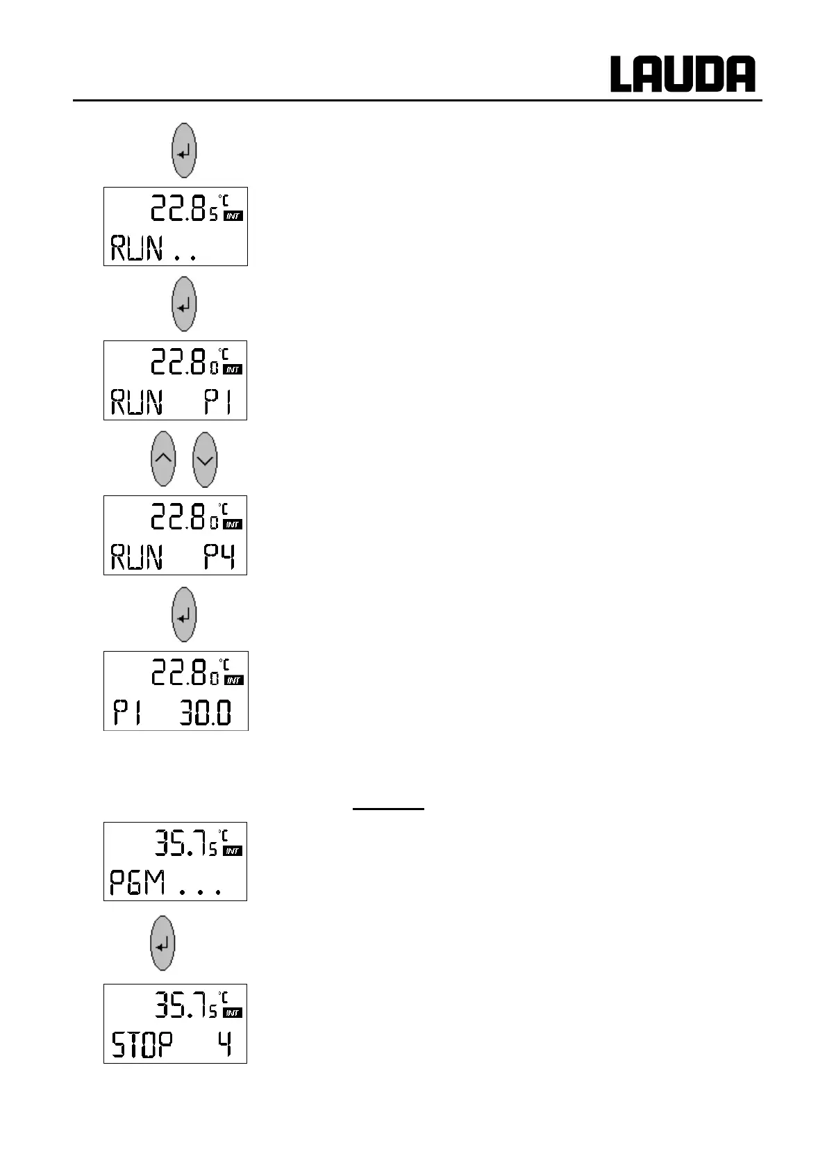 running, the display shows STOP and the programme