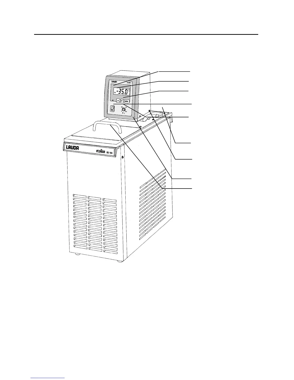 Lauda RE 106 - Control and Functional Elements; Interface Elements; Safety Controls; Bath Components
