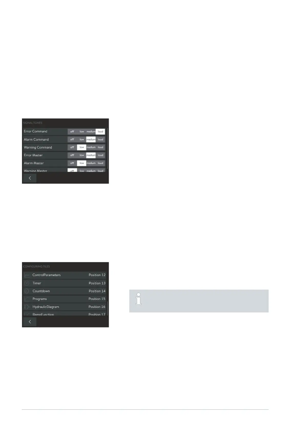 In this menu, you can adjust the volume of the signal tones for: Errors, alarms