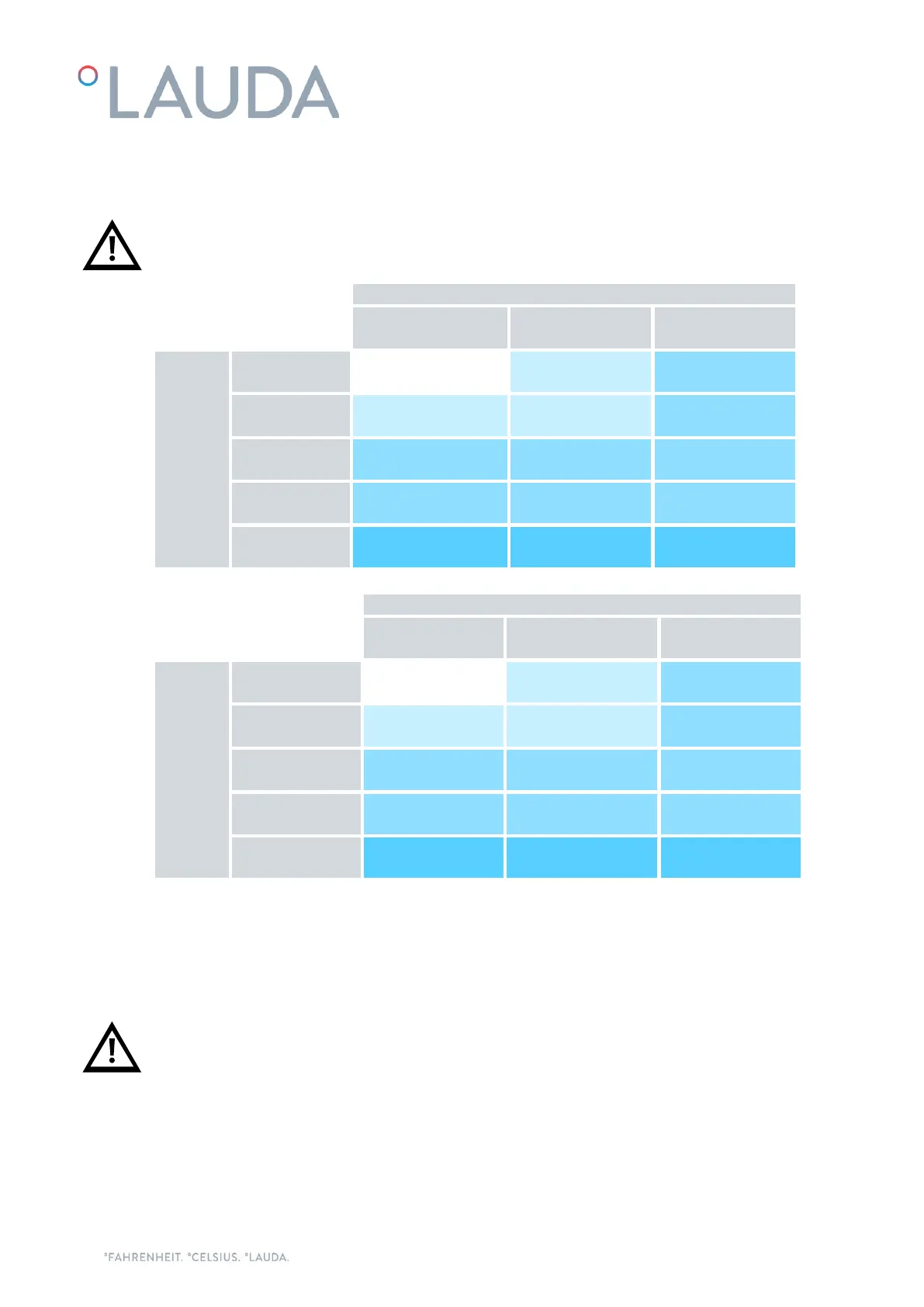 Only an authorized technical service can adjust the antifreeze set point. The following table shows the