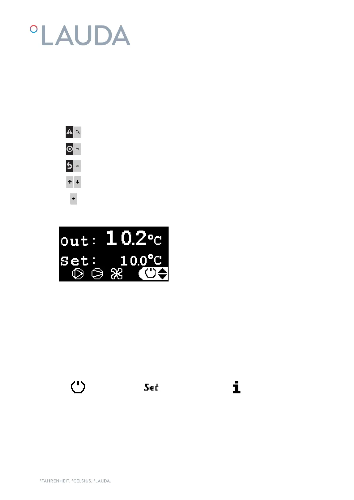 The main screen shows the current outlet temperature, the current setpoint and it shows which motors in the