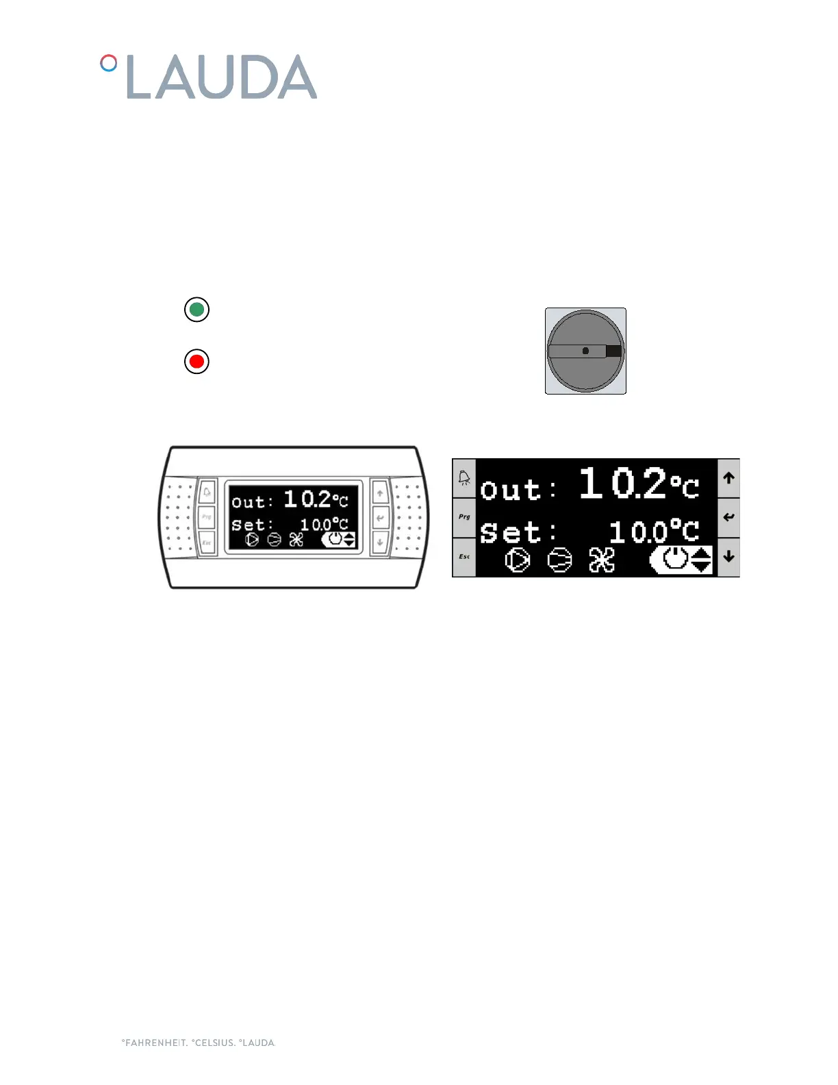 2. Warning/Alarm LED: It blinks when a Warning is active, the chiller is still running. It is lit steadily when an