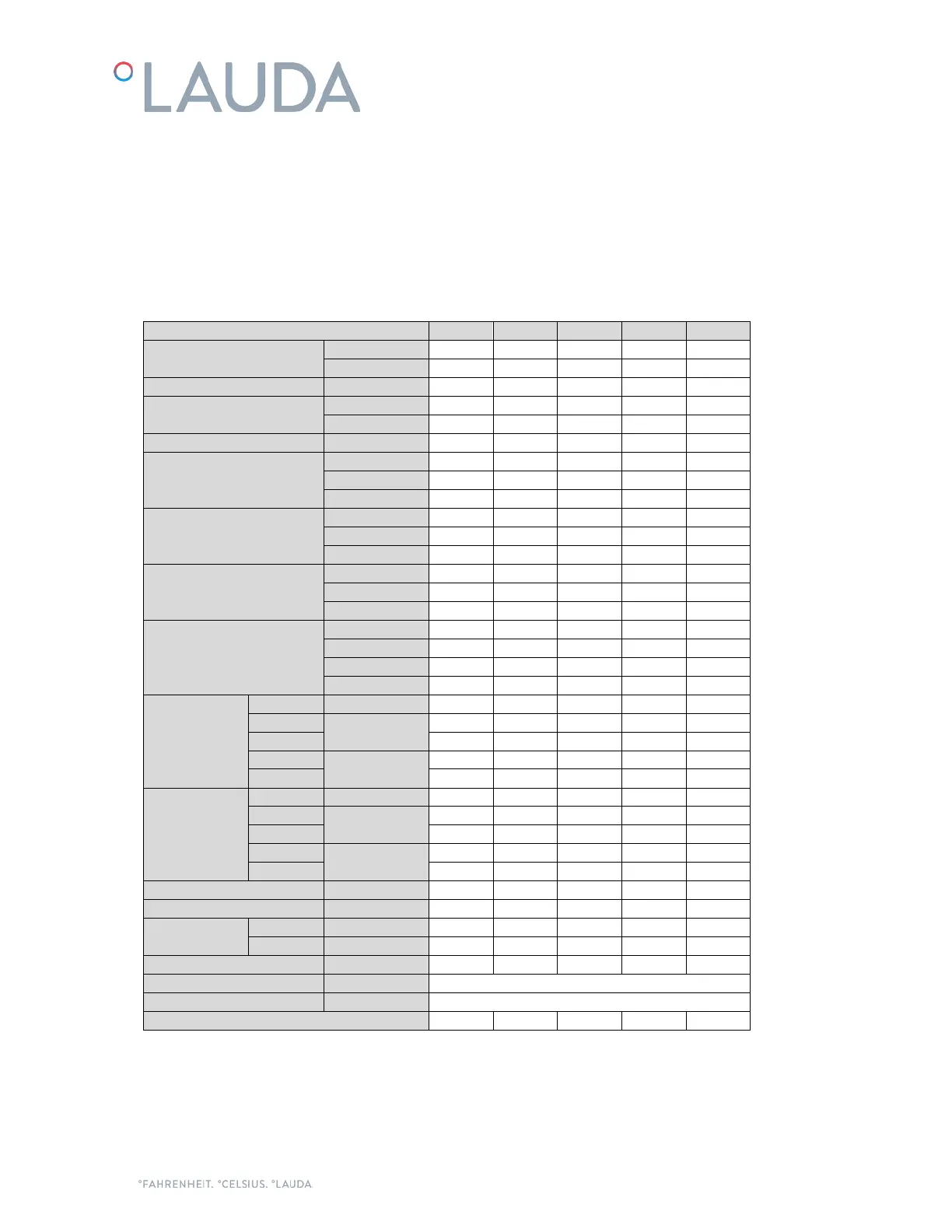 Lauda ULTRACOOL UC 50 - TECHNICAL FEATURES; SPECIFICATIONS TABLE