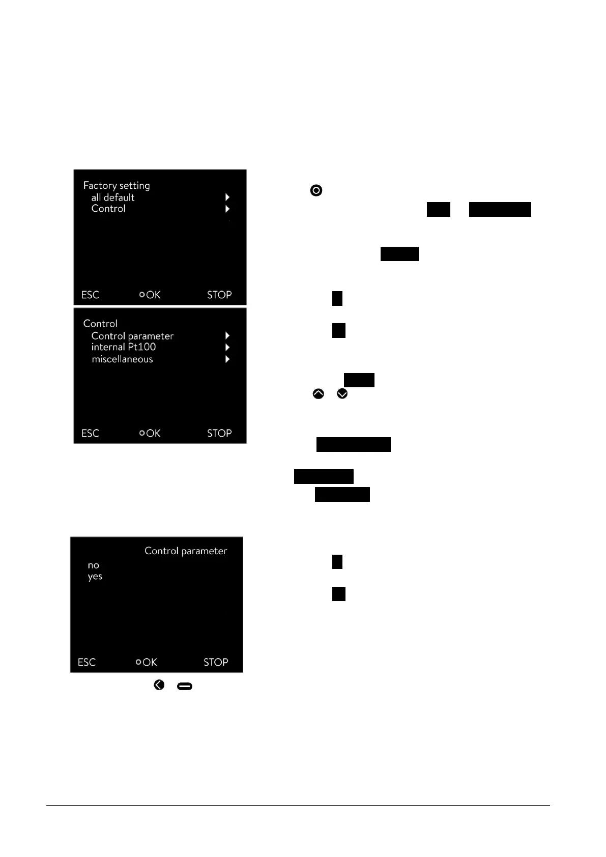 - Selecting yes resets the selected parameter if you confirm this