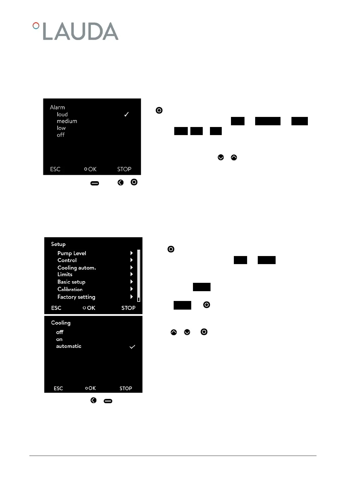 By pressing or (ESC) you are returned to the menu level without any change.