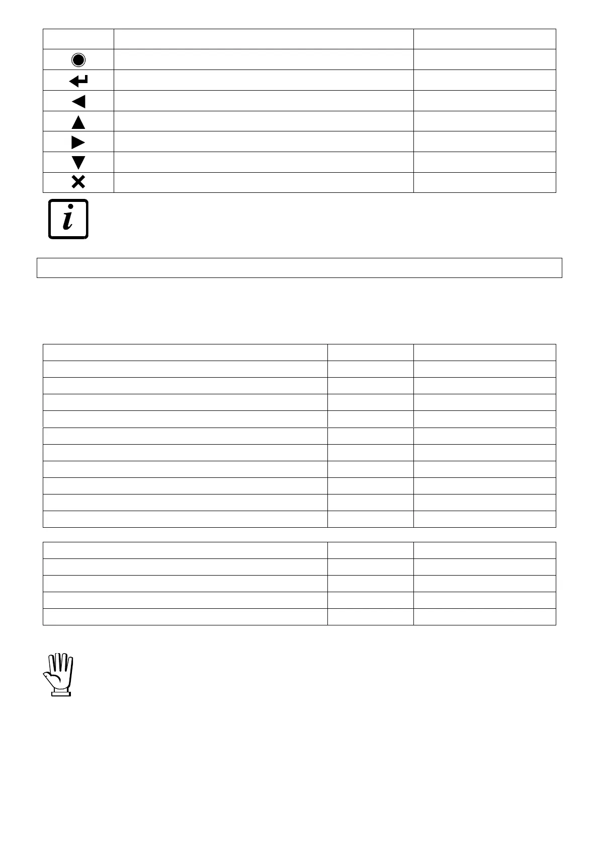 Enter in menu/return to the weight displaying