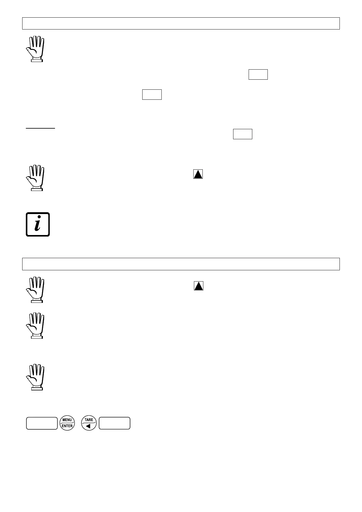 - IF A SEMI-AUTOMATIC TARE (NET) IS ENTERED, IT IS NOT POSSIBLE TO