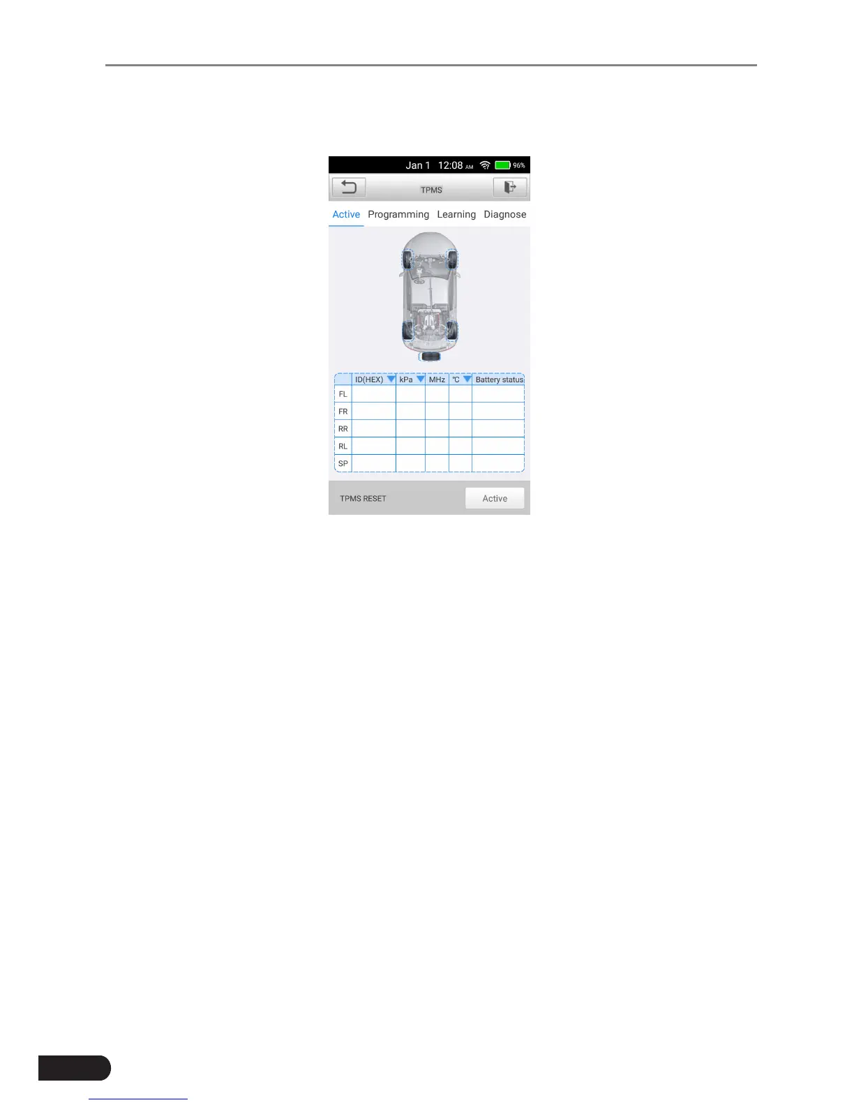 The Activation function allows user to activate TPMS sensor to view sensor data