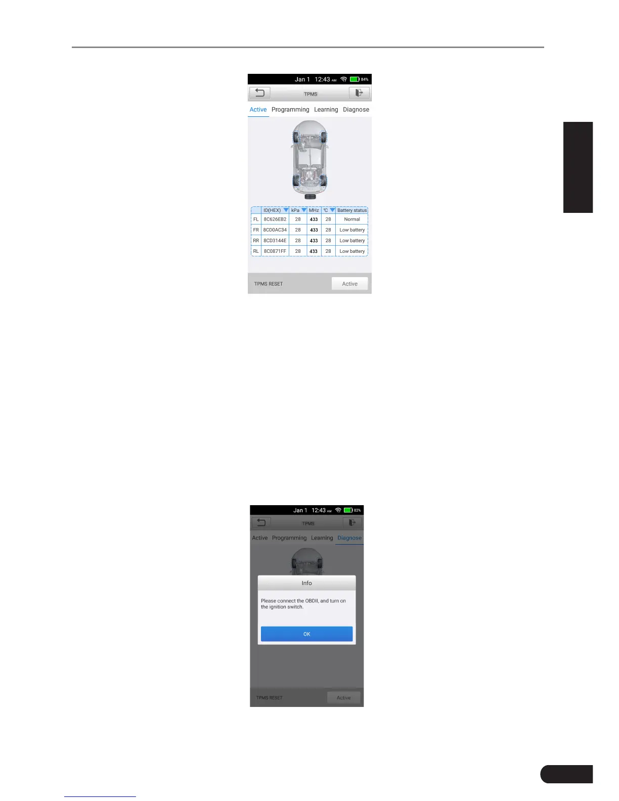 function requires connection with the test vehicle. Please refer to Chapter 6.1
