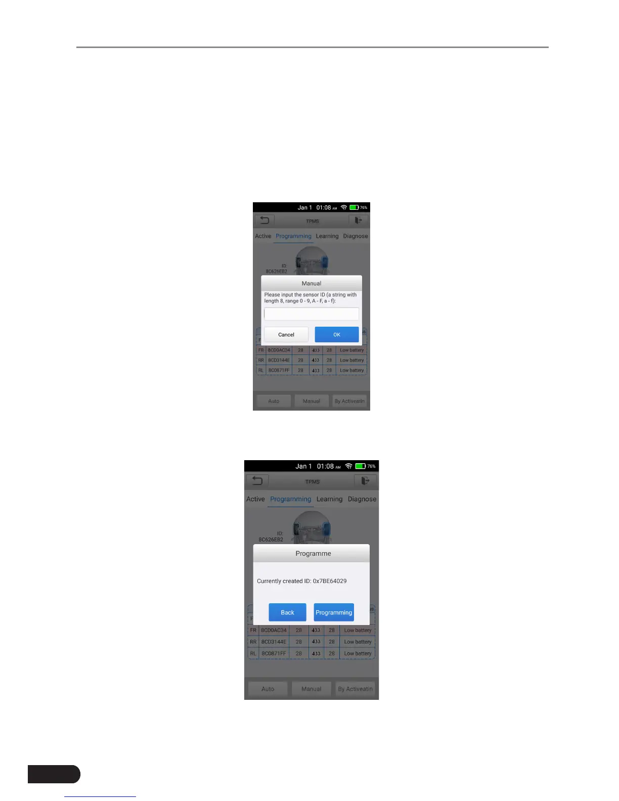 The Manual allows users to program a new Sensor with the ID of an TPMS
