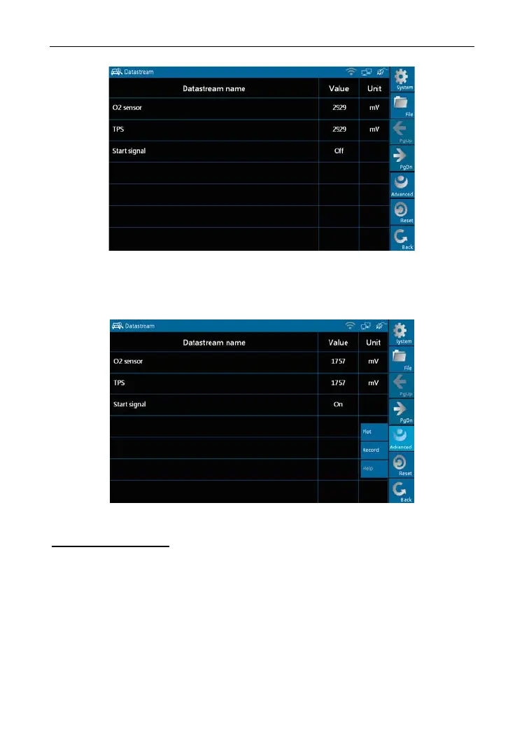 To view the dynamic waveform of the selected data stream, click [Advanced]