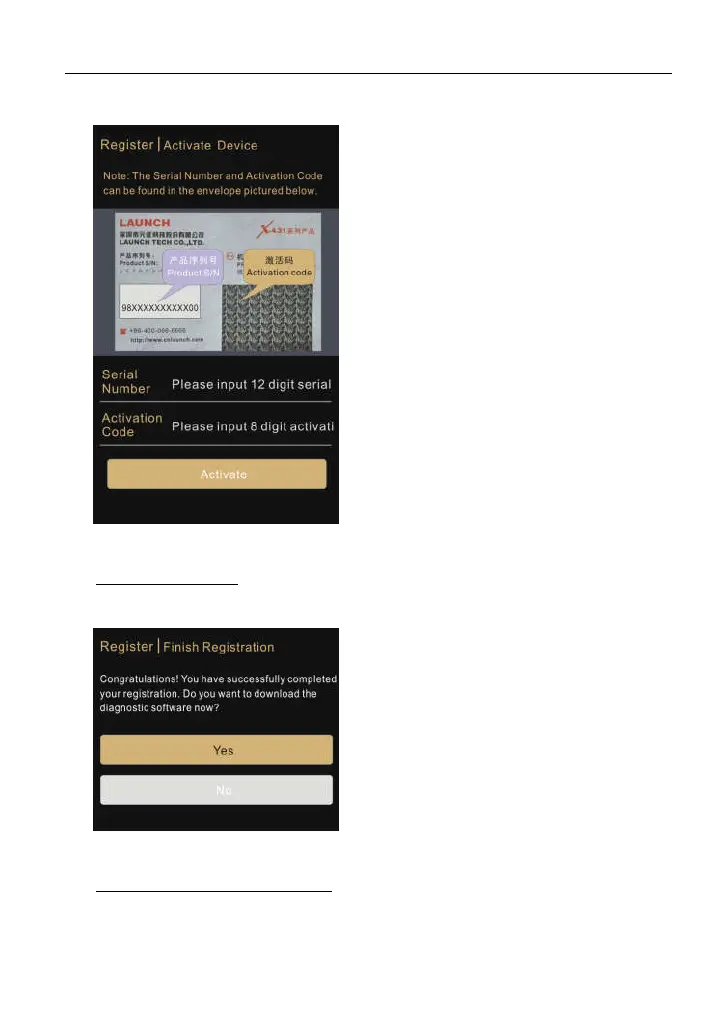 4. Finish Registration: To download the diagnostic software, tap “Yes” to enter