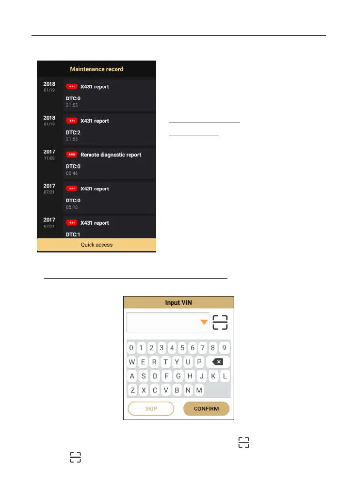 1) Tap “ ” to launch the VIN recognition module.