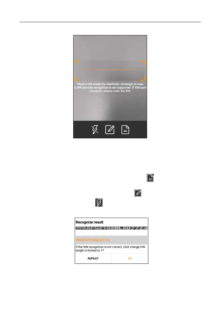 • If the VIN scanned is incorrect, tap the result field to modify it and then