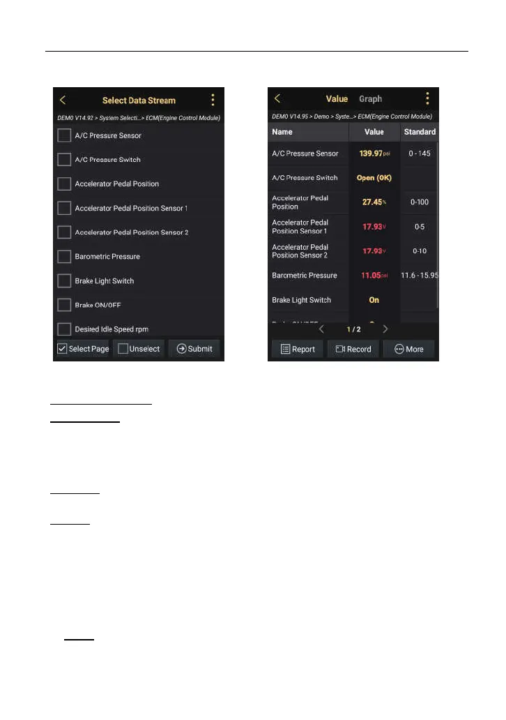 Value – this is the default mode which displays the parameters in texts and